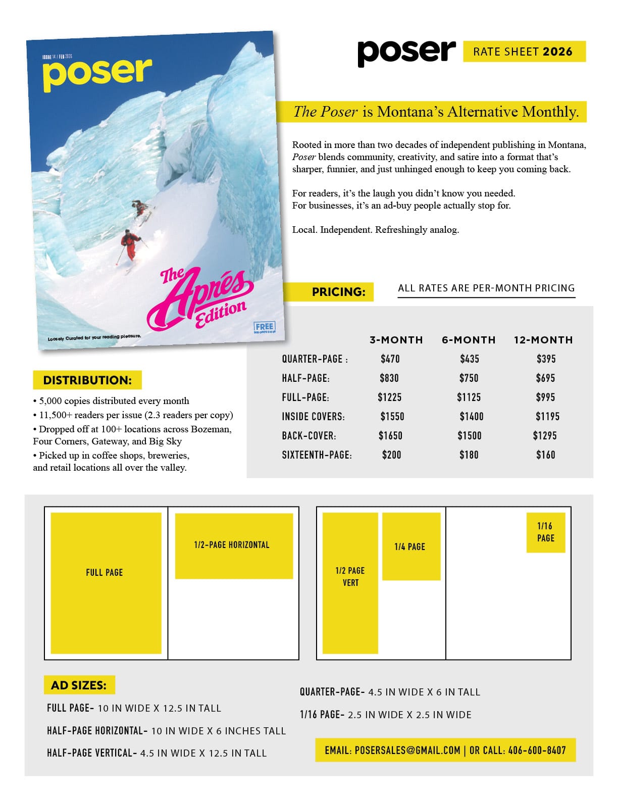 The Poser is Montana's alternative monthly magazine, rooted in more than two decades of independent publishing and built for people who actually pay attention.